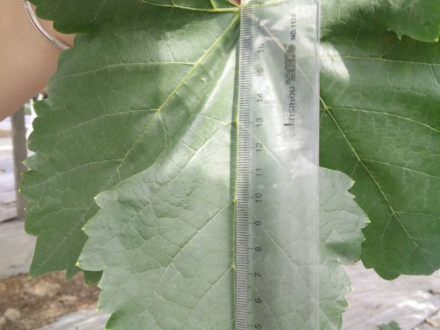 新稍梢尖颜色为红绿色,幼叶颜色为紫红色带绿色,成熟枝条颜色为黄褐色,成龄叶形状为心形,裂片数为5裂,花器类型为两性花,果穗基本形状为圆锥形,有岐肩,有副穗。