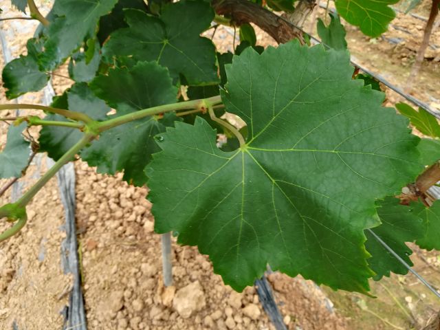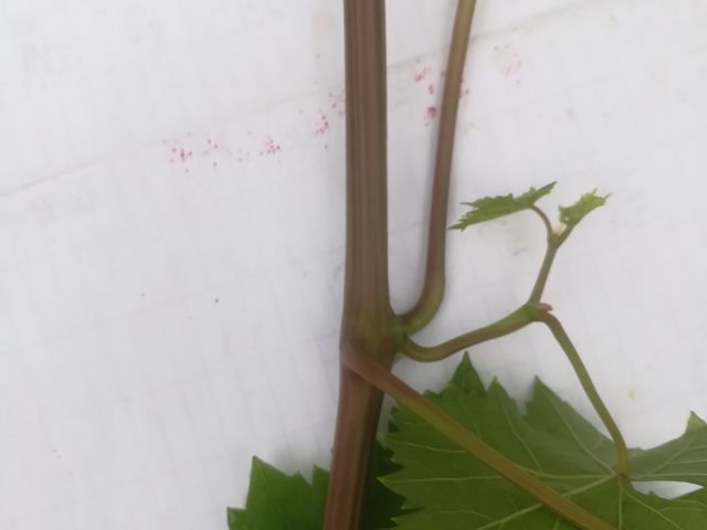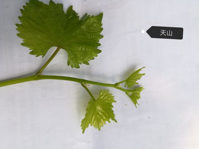新稍梢尖颜色为浅绿色,幼叶颜色为黄褐色,成熟枝条颜色为红褐色,成龄叶形状为楔形,裂片数为3裂,花器类型为两性花,果穗基本形状为圆锥形,有岐肩,有副穗。