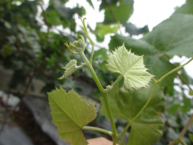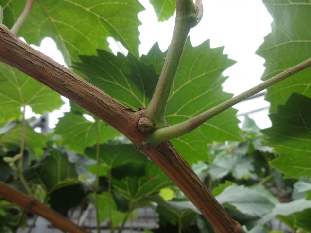 新稍梢尖颜色为绿色,幼叶颜色为绿色,成熟枝条颜色为黄褐色,成龄叶形状为心形,裂片数为5裂,花器类型为两性花,果穗基本形状为圆锥形,有岐肩,无副穗。