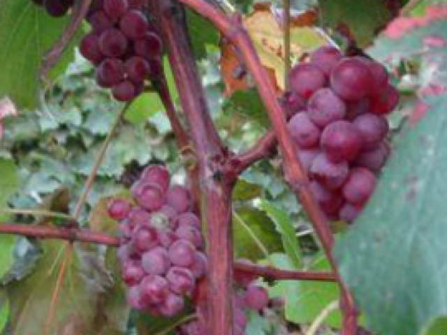 新稍梢尖颜色为绿色带粉红色,幼叶颜色为黄绿色带少量红色晕,成熟枝条颜色为暗褐色,成龄叶形状为心形,裂片数为5裂,花器类型为两性花,果穗基本形状为圆柱形,有岐肩,有副穗。